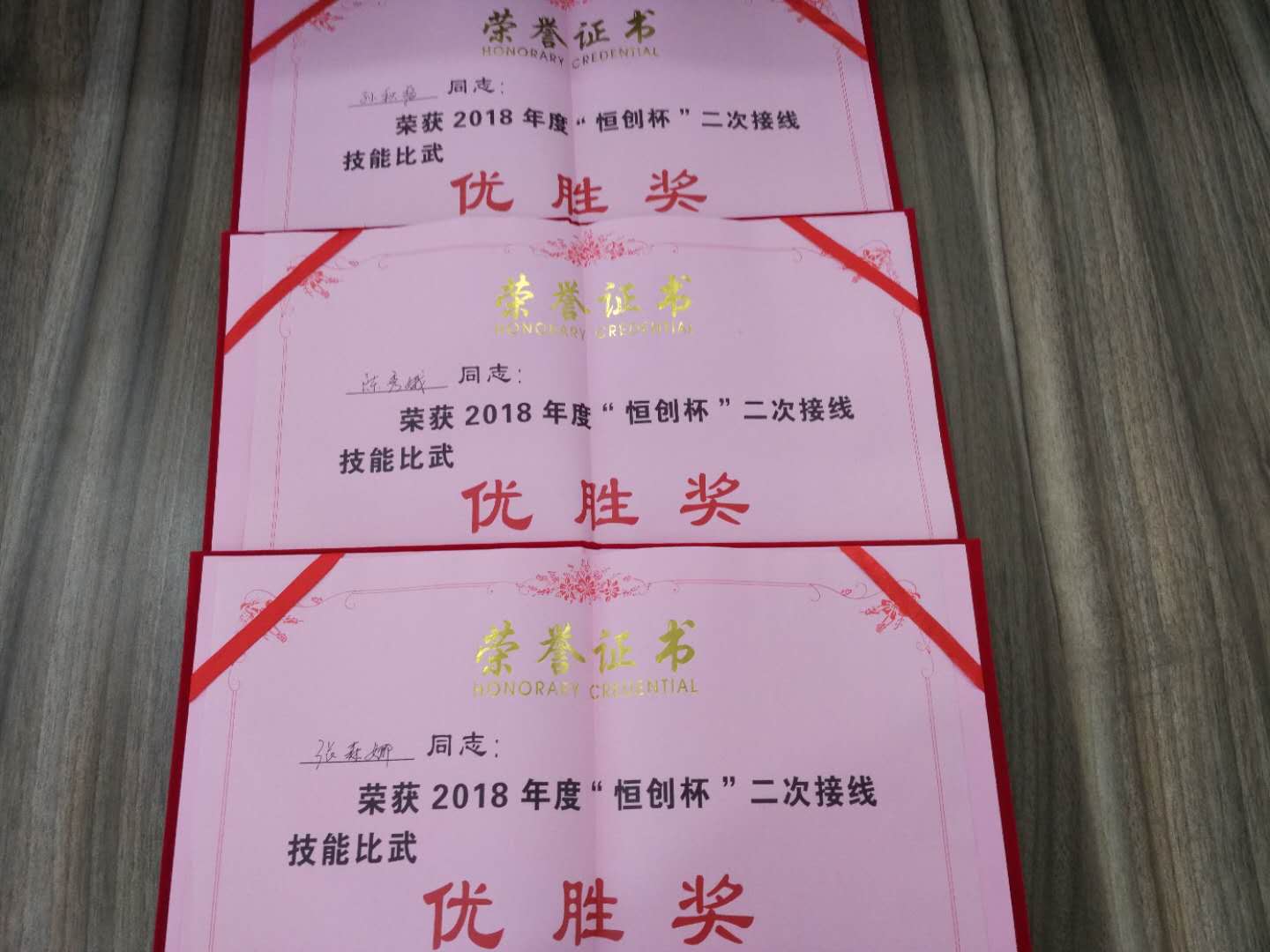 熱烈祝賀我公司三位巾幗女將張森娜、孫秋梅、陳秀娥在公司技術總監蔣夢玲的帶領下不畏強手,勇于拼搏,榮獲嘉興恒創電力設備有限公司舉辦的2018年度“恒創杯”二次接線技能比武集體“三等獎”。并且三人都榮獲個人“優勝獎”及相應獎金,恭喜代表公司參賽的人員,是你們的責任心和付出精神為普金贏得了榮譽!希望公司全體員工向參賽員工學習,刻苦鉆研技術,努力提高個人的操作技能,爭取更大的進步!